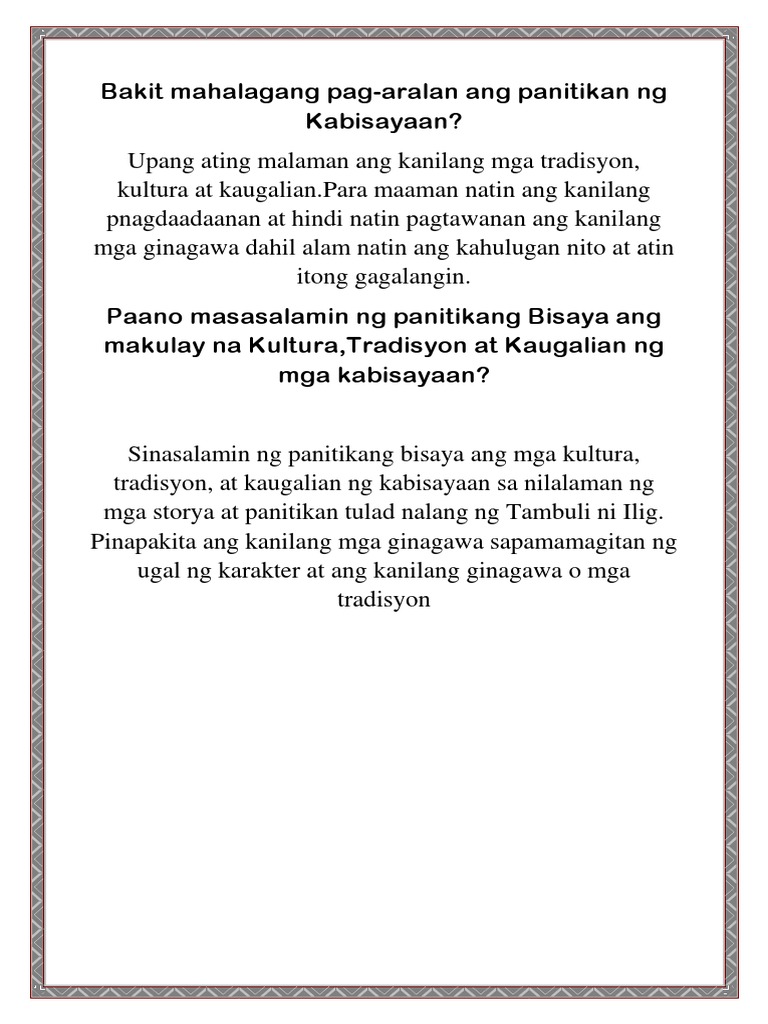 Kulturang Kinagisnan Ng Visayas Pdf